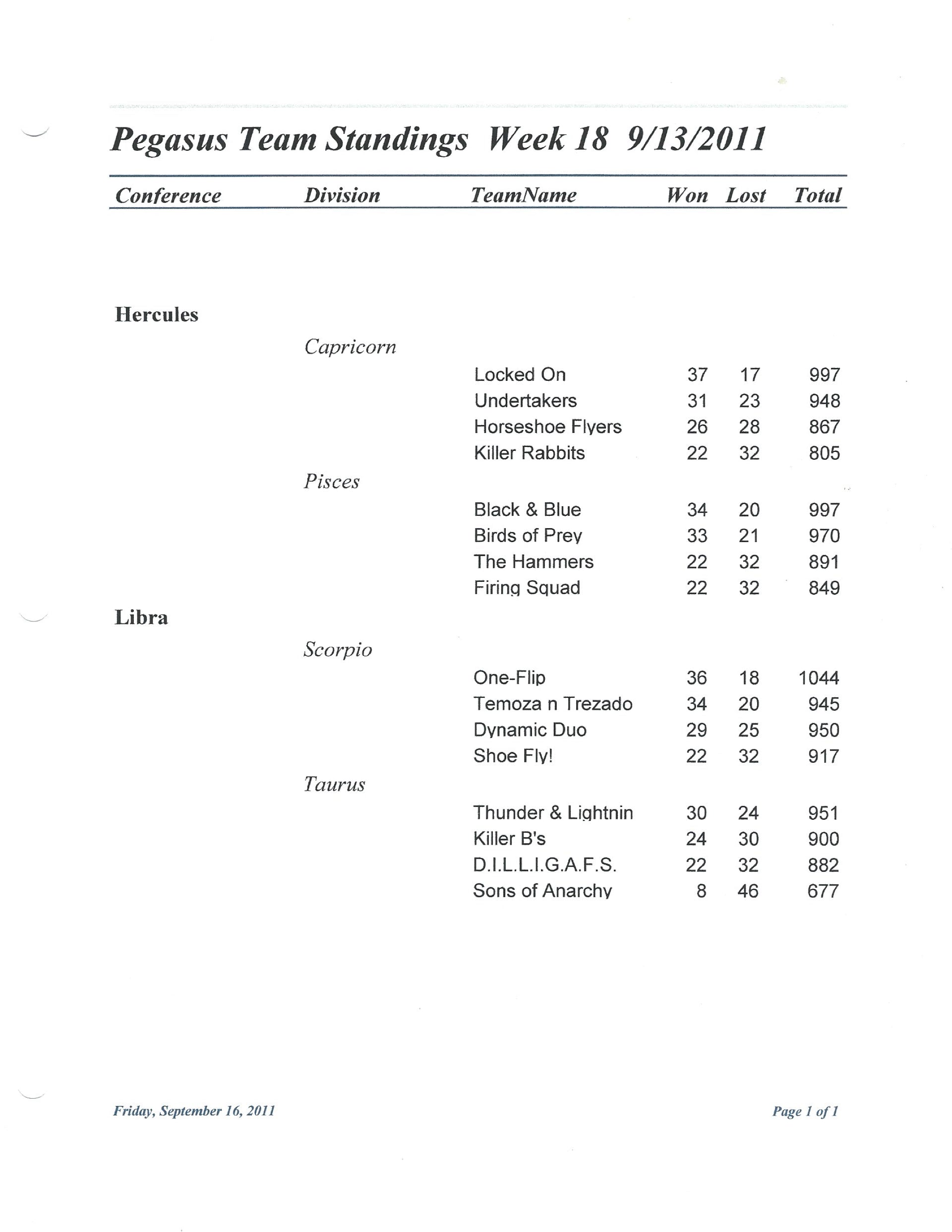 2011 Standings