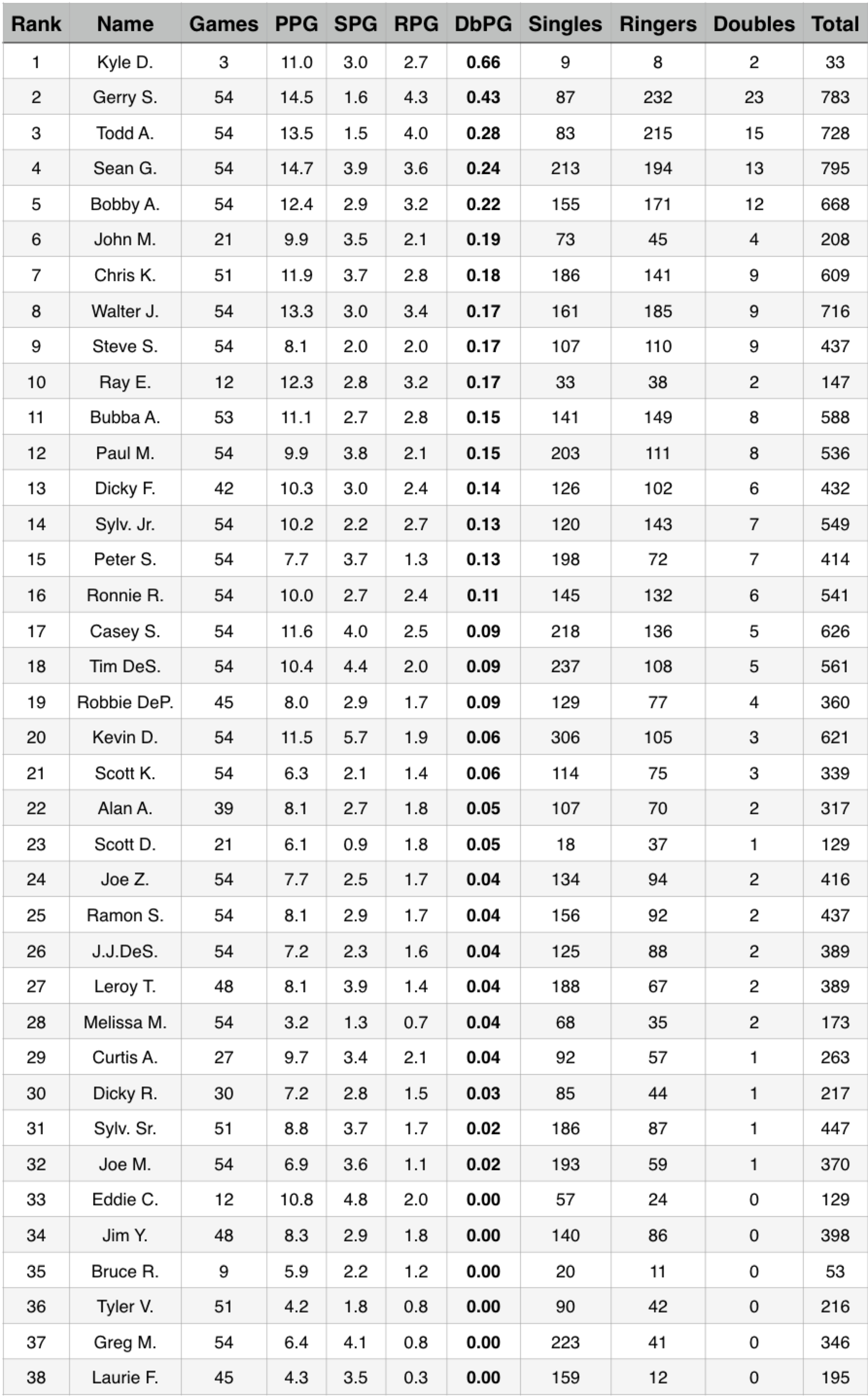 PPG     SPG     RPG     DbPG     Total     Top Ten