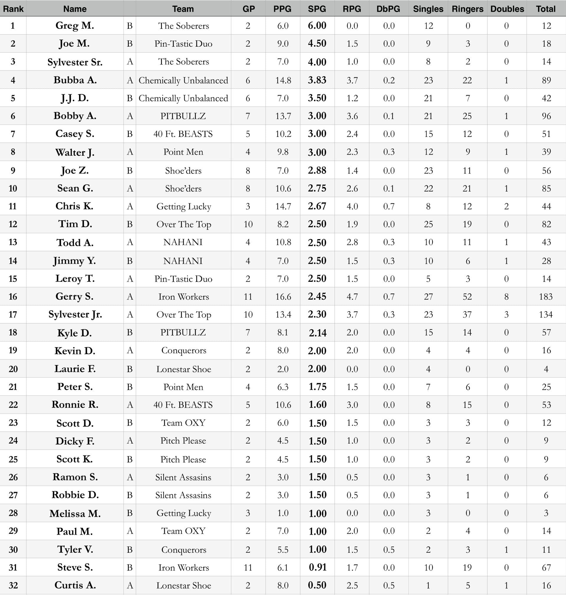 Standings