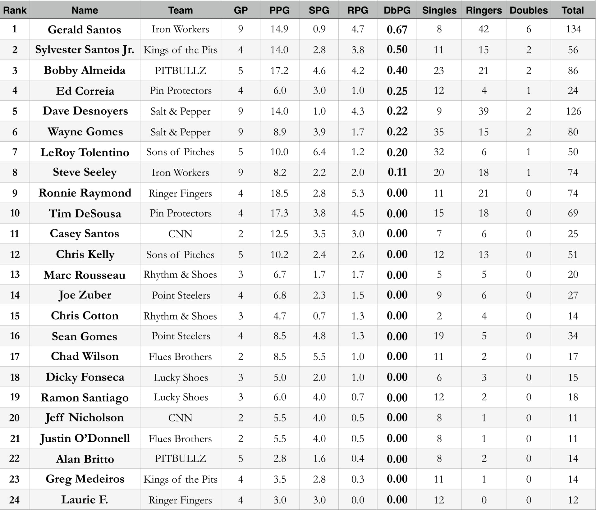 PPG    SPG    RPG    DbPG    Total