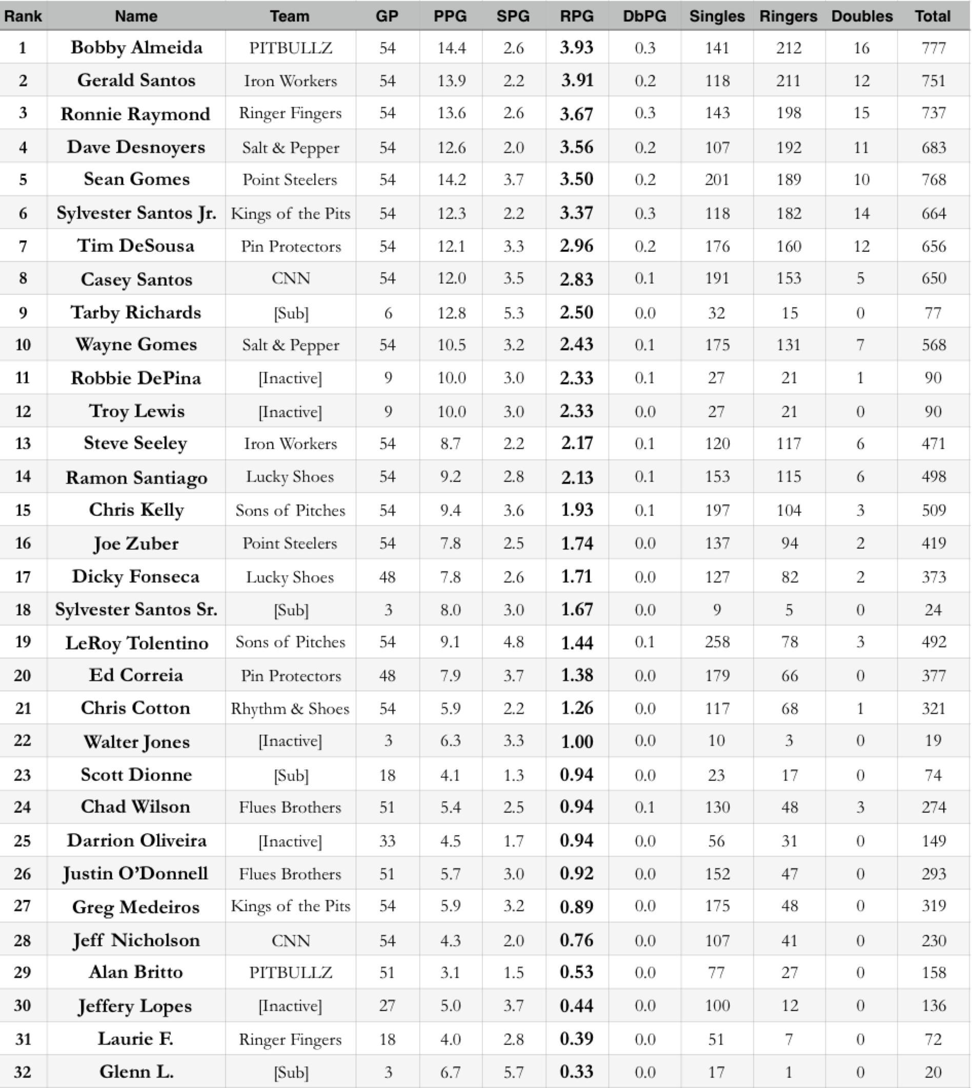 2016 Individual Season Stats