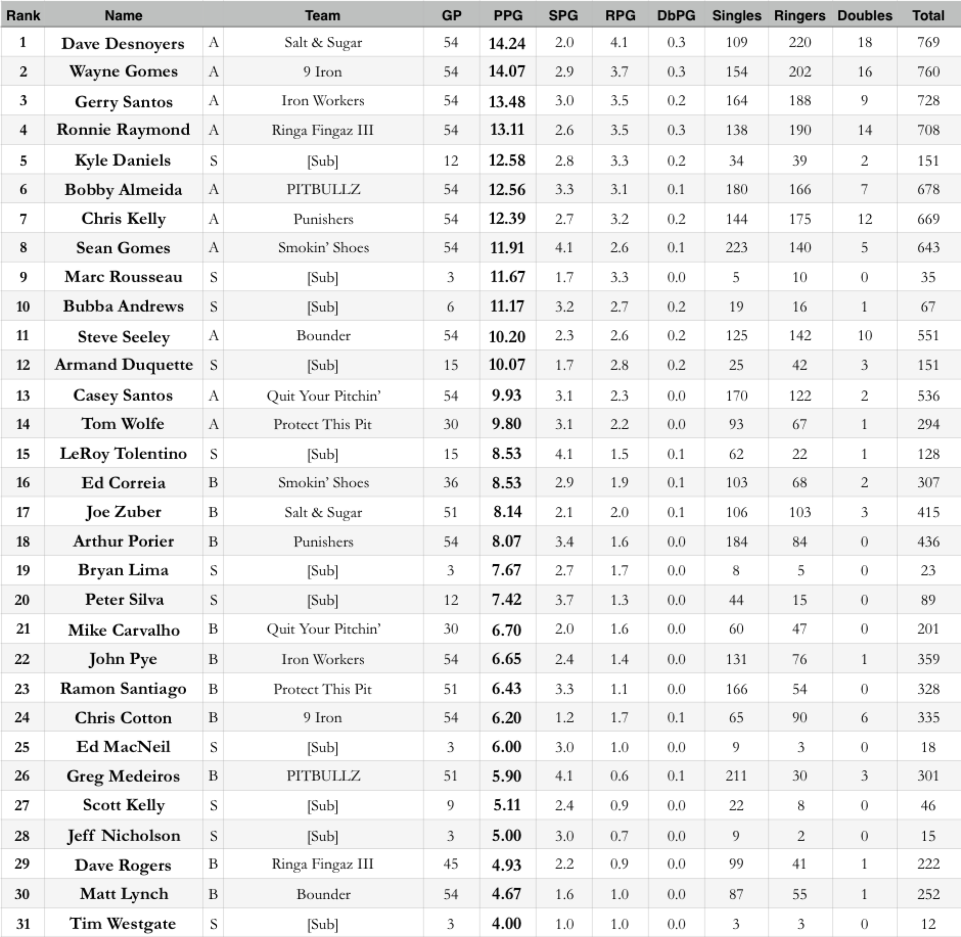 PPG   SPG   RPG   DbPG   Total   Top 3