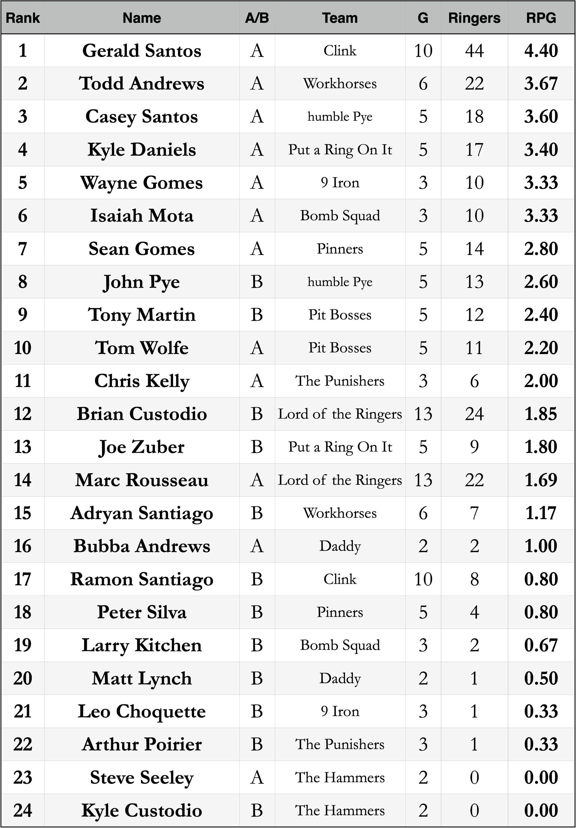 Standings