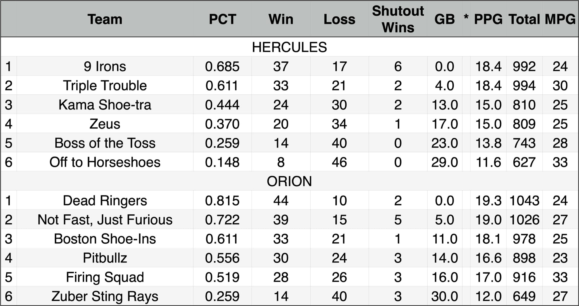 Standings