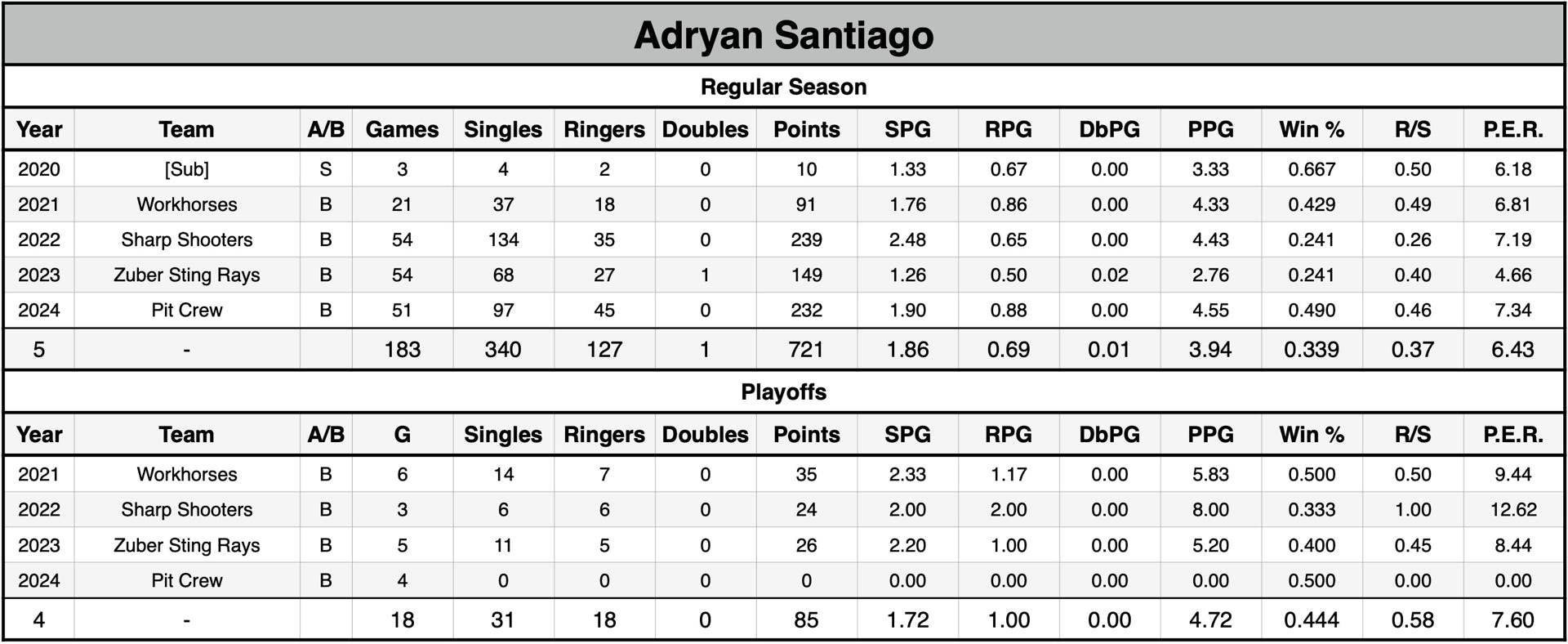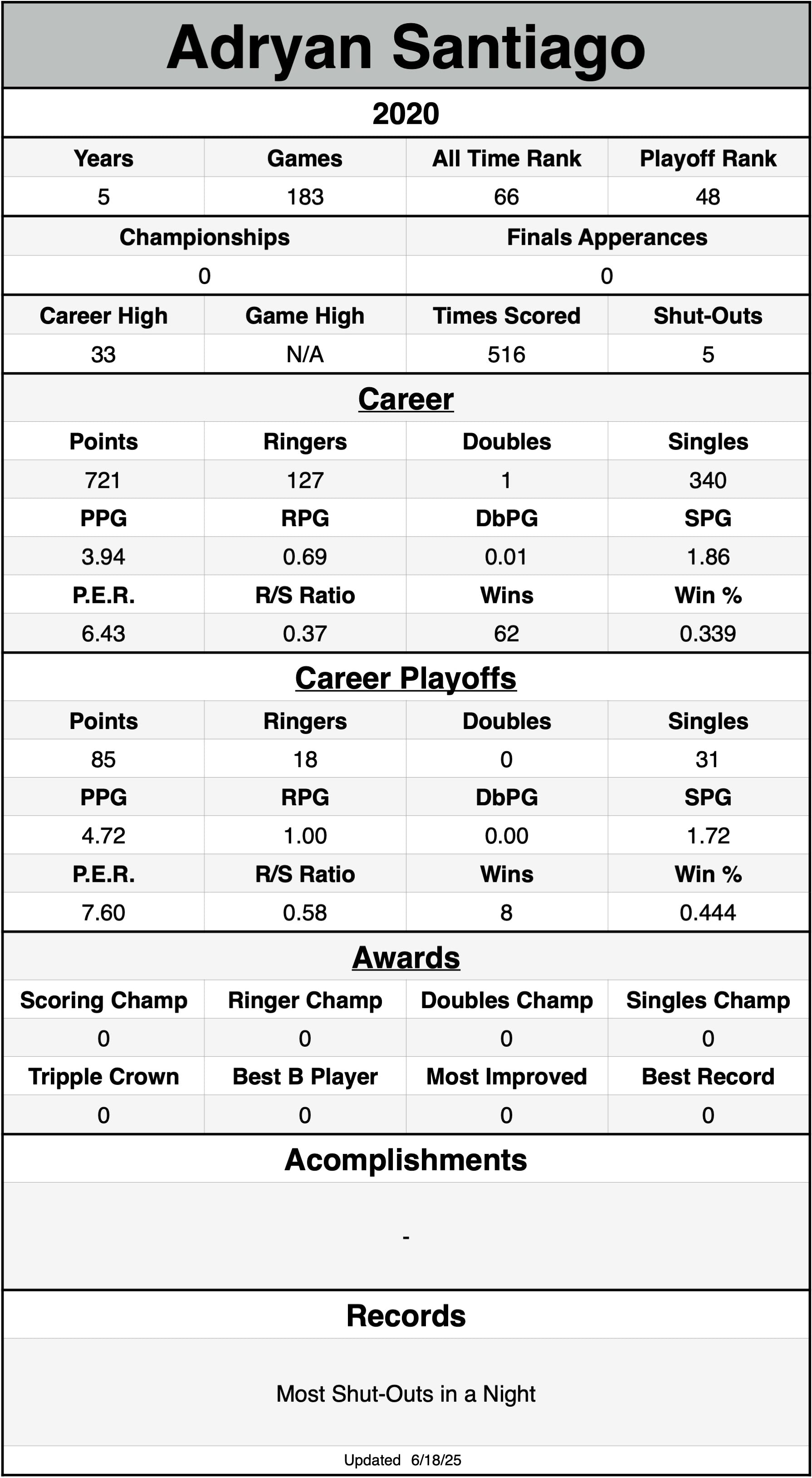 P.E.R. may currently be listed lower than actual P.E.R. for seasons without shut-out data