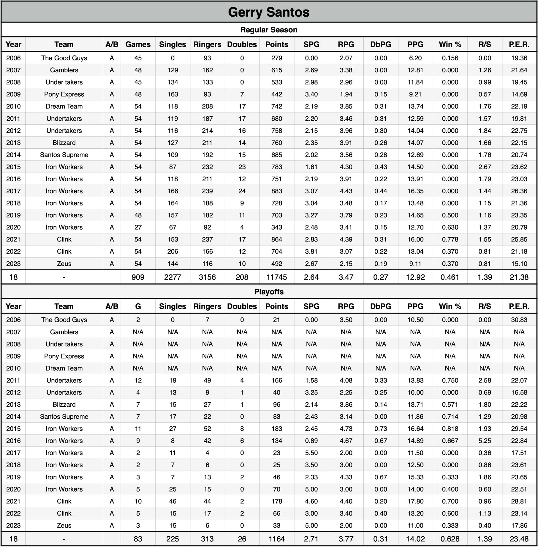 P.E.R. may currently be listed lower than actual P.E.R. for seasons without shut-out data