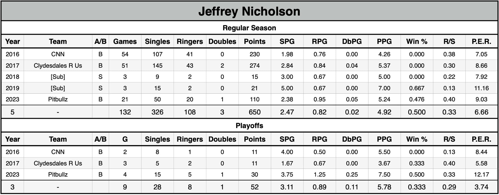 P.E.R. may currently be listed lower than actual P.E.R. for seasons without shut-out data