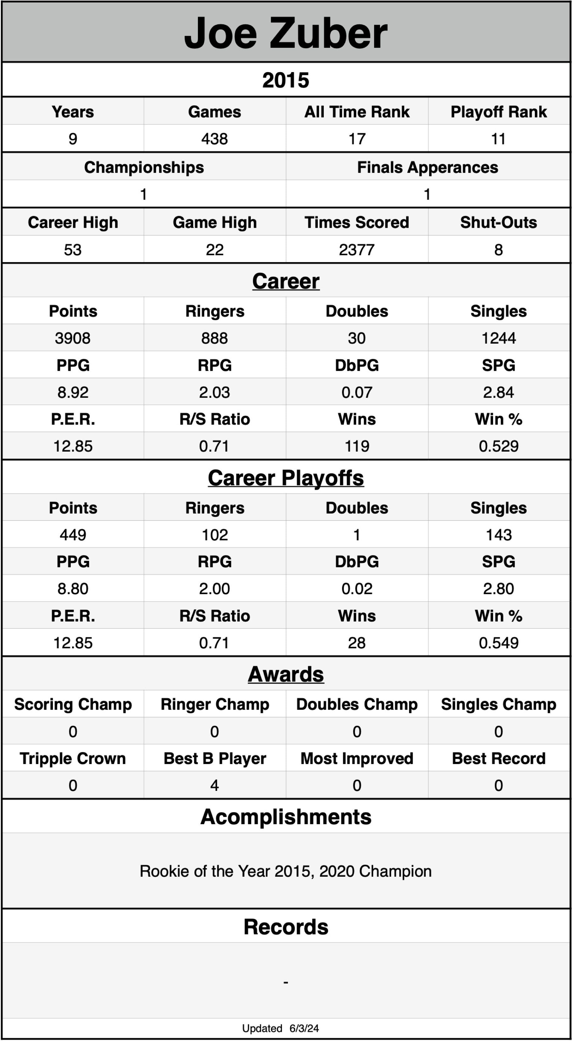 P.E.R. may currently be listed lower than actual P.E.R. for seasons without shut-out data