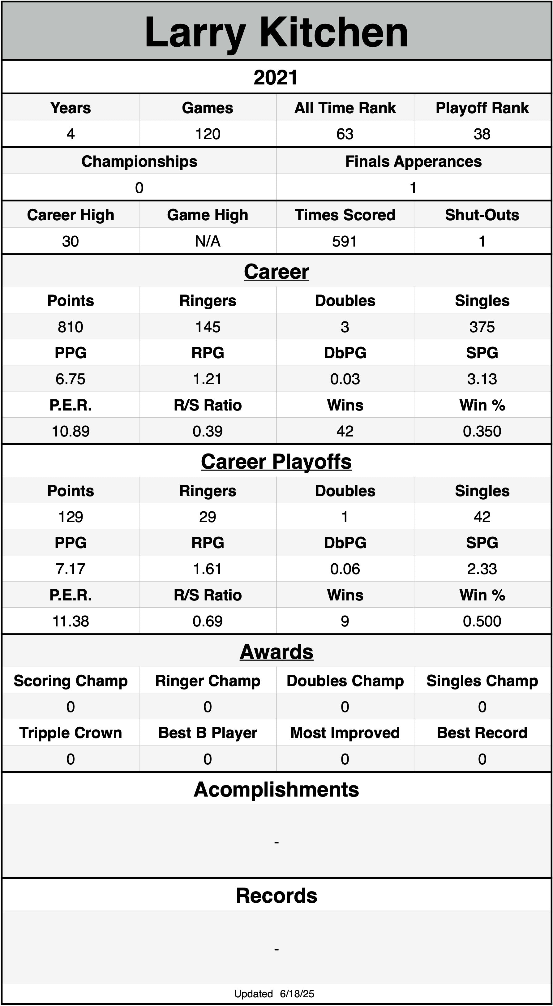 P.E.R. may currently be listed lower than actual P.E.R. for seasons without shut-out data