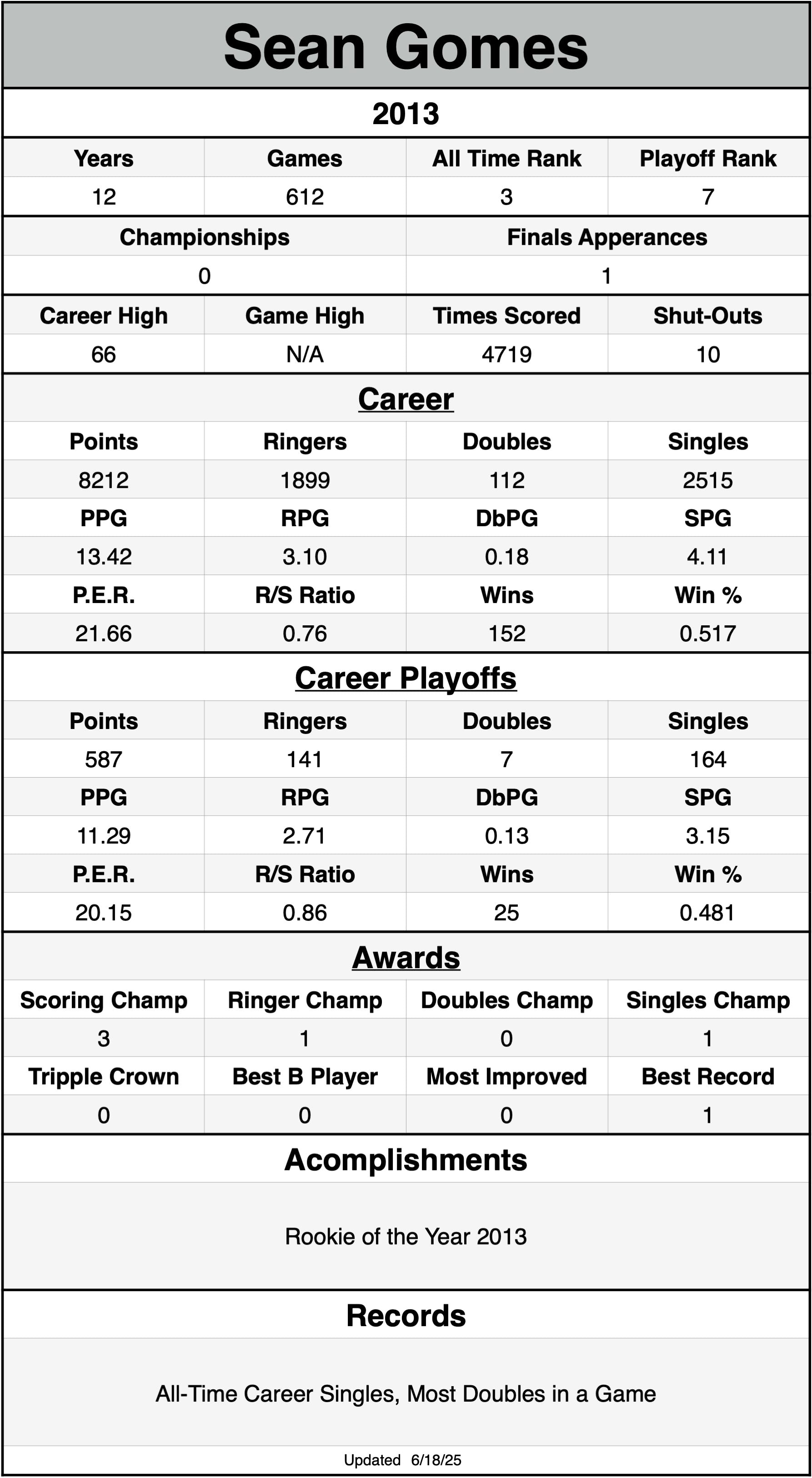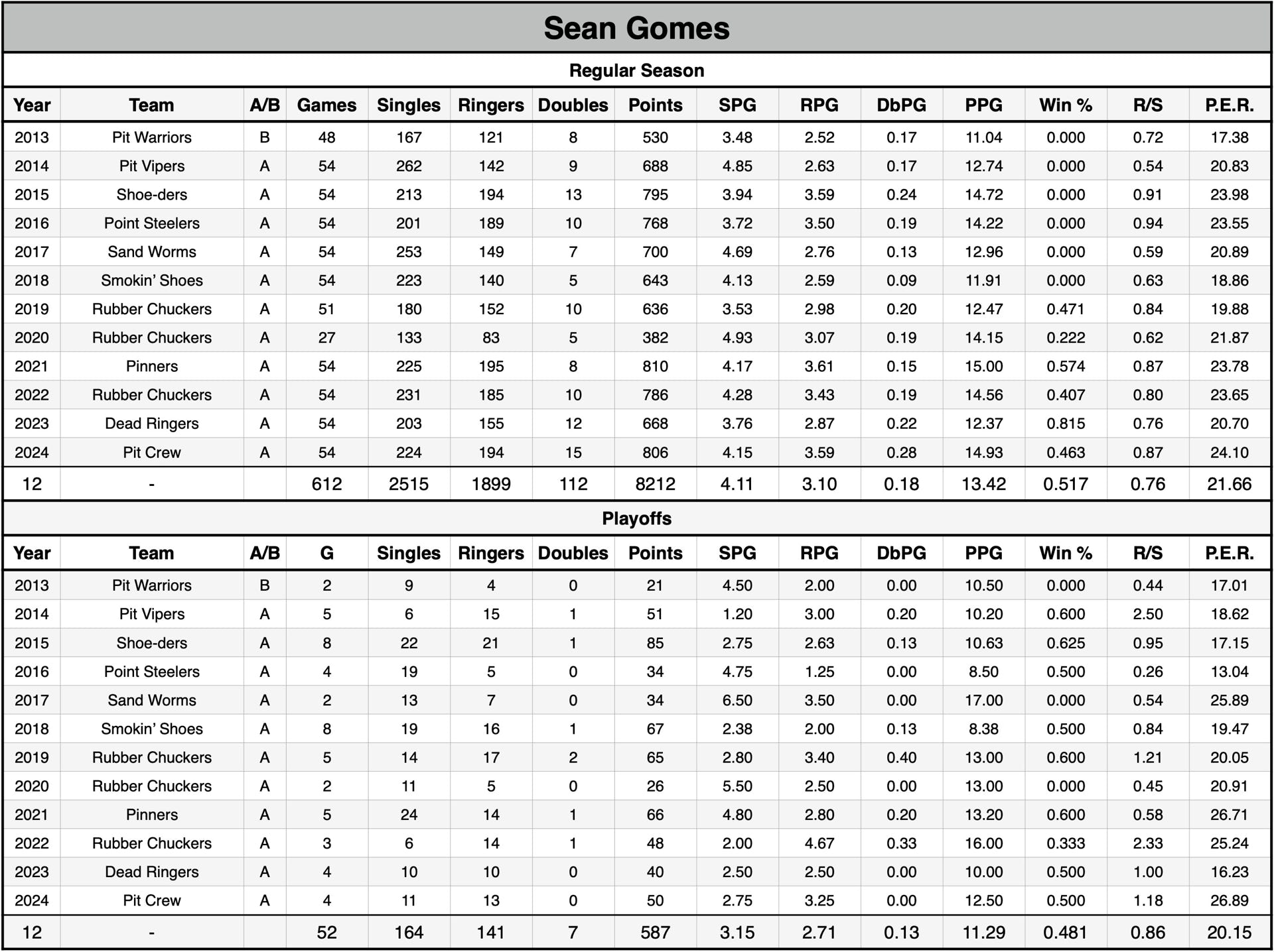 P.E.R. may currently be listed lower than actual P.E.R. for seasons without shut-out data