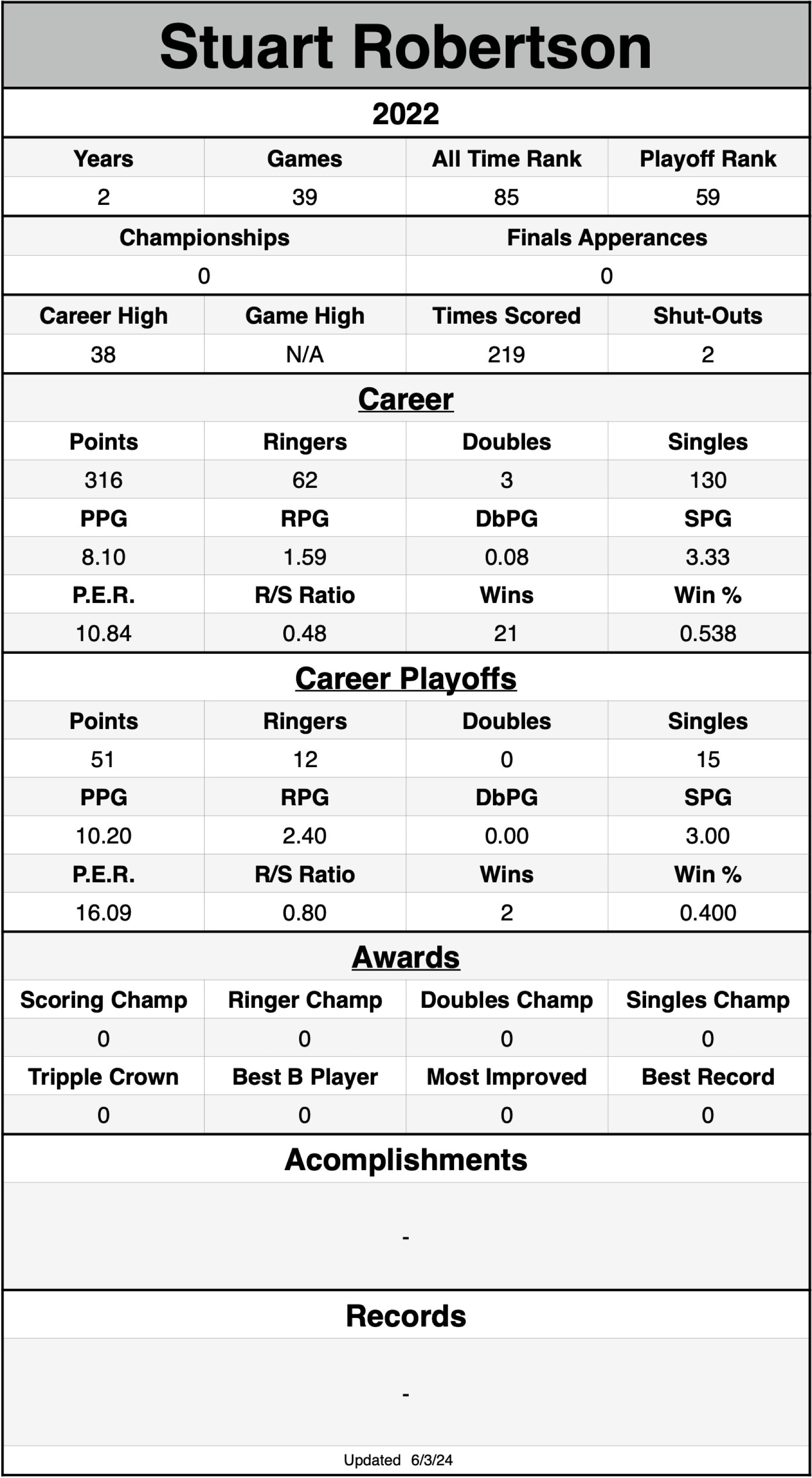 P.E.R. may currently be listed lower than actual P.E.R. for seasons without shut-out data