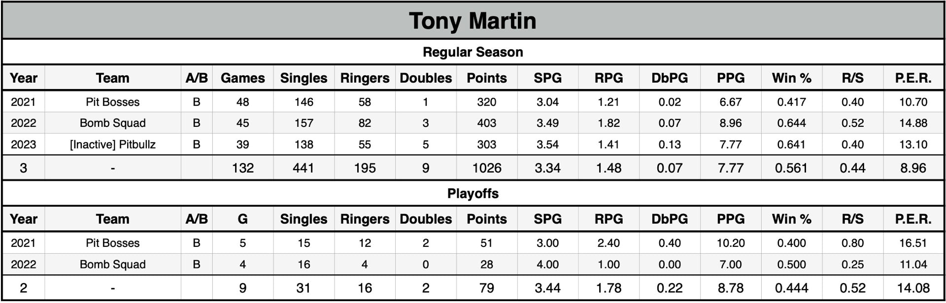 P.E.R. may currently be listed lower than actual P.E.R. for seasons without shut-out data