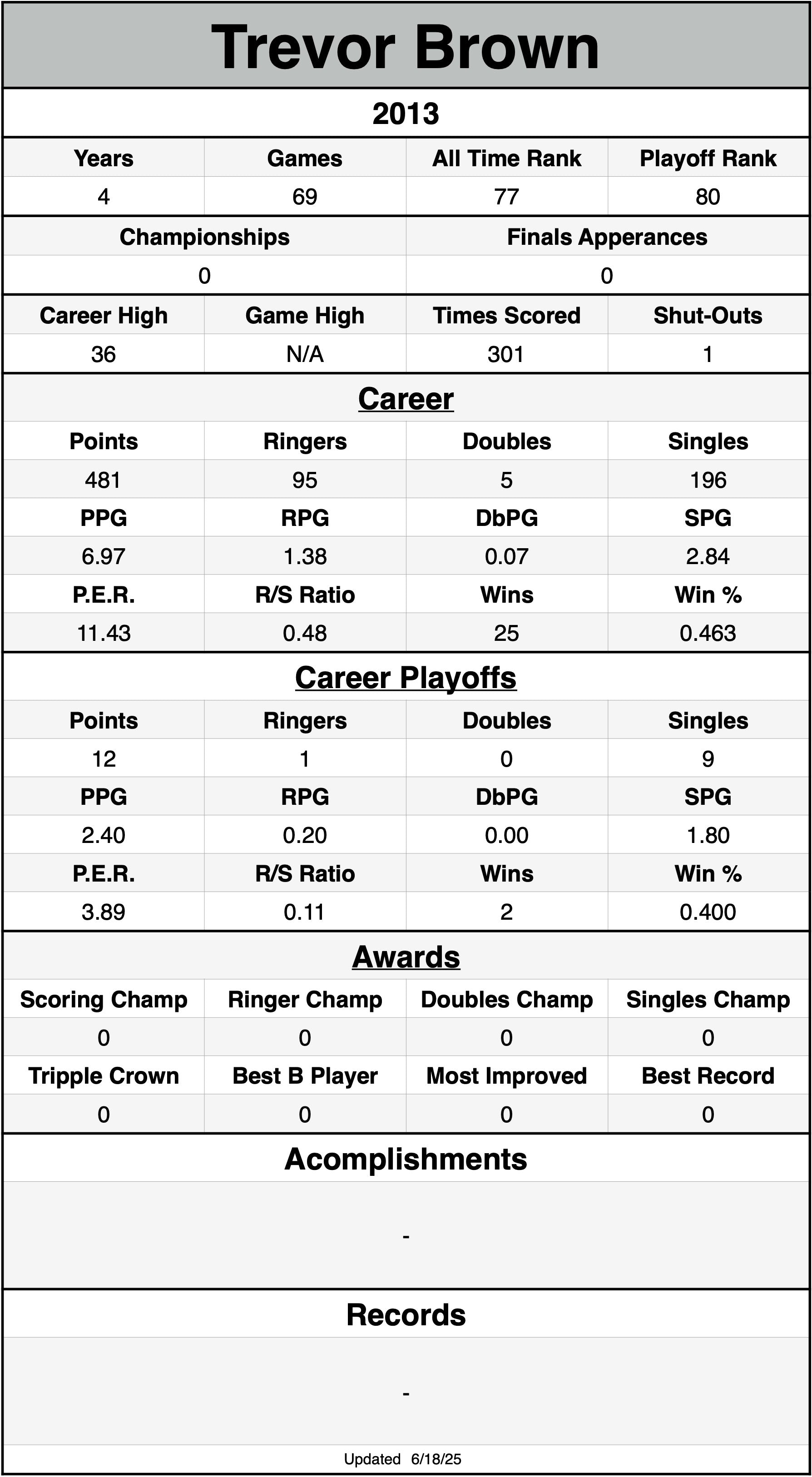 P.E.R. may currently be listed lower than actual P.E.R. for seasons without shut-out data