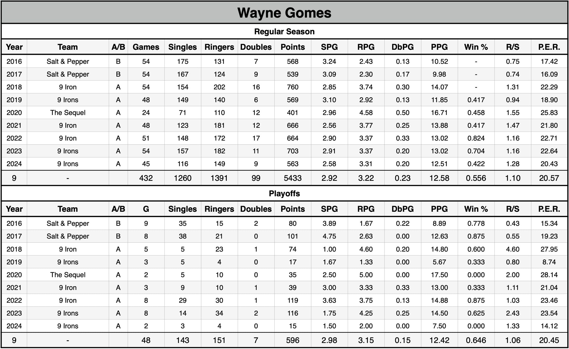 P.E.R. may currently be listed lower than actual P.E.R. for seasons without shut-out data